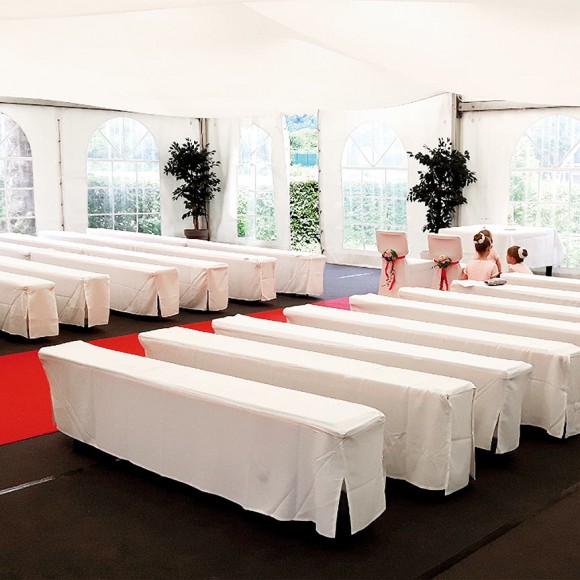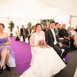 Unter blauem Himmel auf unserer Sonnenterrasse oder in unserem luftig-leichtem Festzelt: immer eine wunderschöne Kulisse für Ihre wichtigsten Momente.